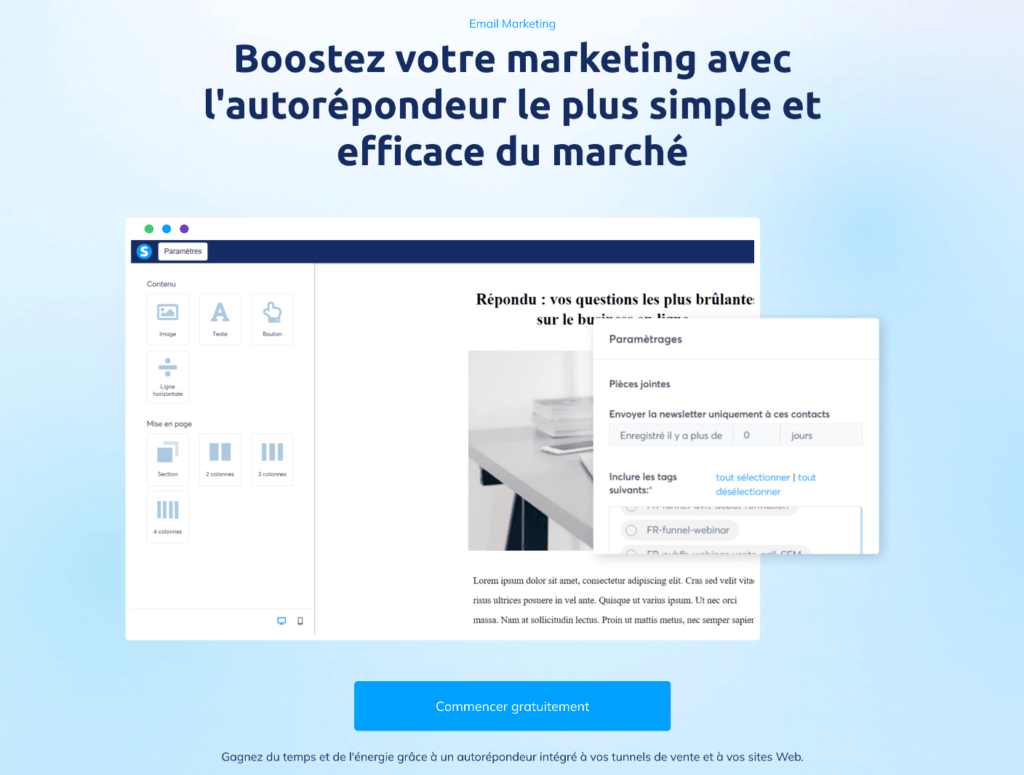 Avec un auto-répondeur, les campagnes d’emailing sont plus faciles et plus efficaces, permettant aux entreprises de se concentrer sur d’autres aspects de leur stratégie de marketing en ligne pour stimuler la croissance et les ventes.